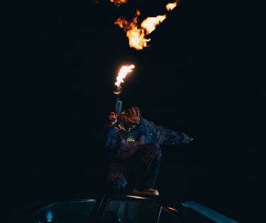 Damys m’a contacté pour réaliser les photos de son clip Anger. Le tournage se déploie à travers plusieurs lieux, notamment une casse automobile et un garage, où intervient une scène au lance-flammes.